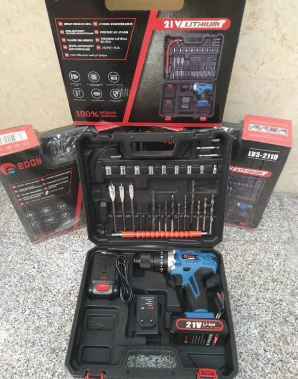 دریل شارژی 21 ولت چکشی سه نظام فلزی ادون