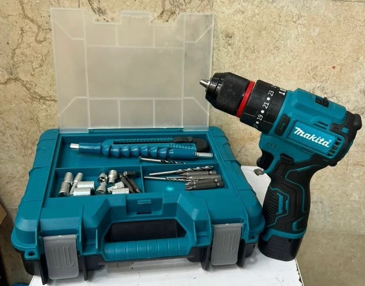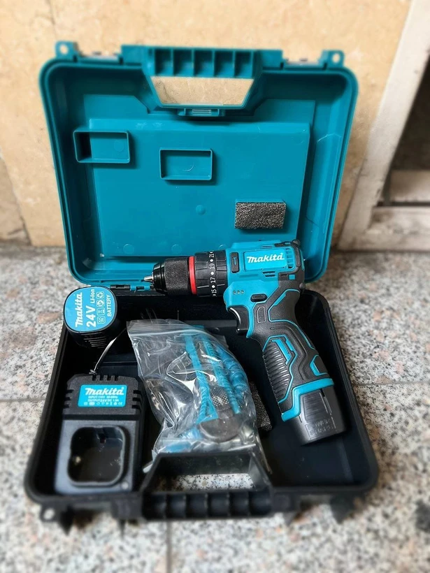 دریل شارژی چکشی براشلس 24 ولت دو باطری ماکیتا