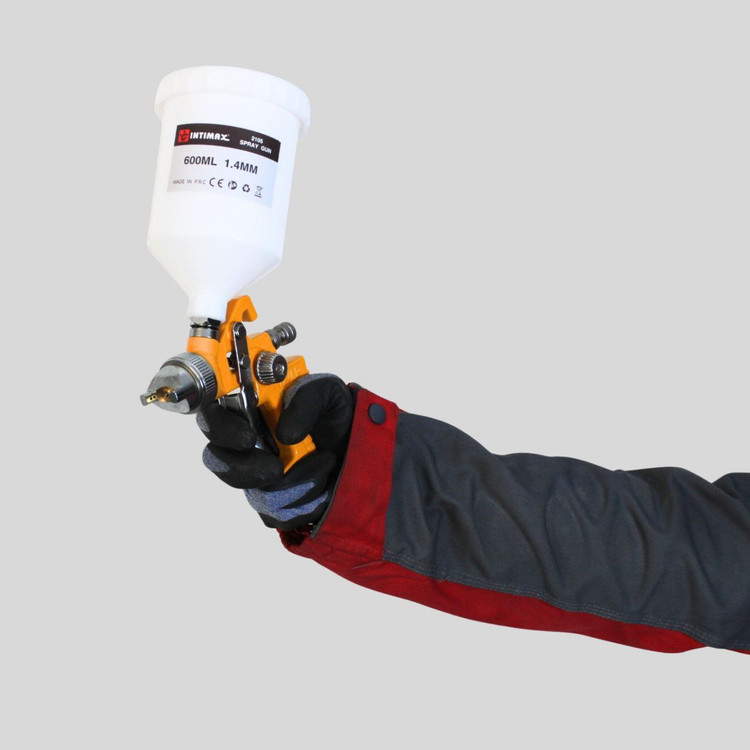 این مدل دارای کاسه پلاستیکی مقاوم و نازل برنجی با قطر 1.4 میلیمتر است که باعث پاشش یکنواخت و دقیق رنگ میشود.