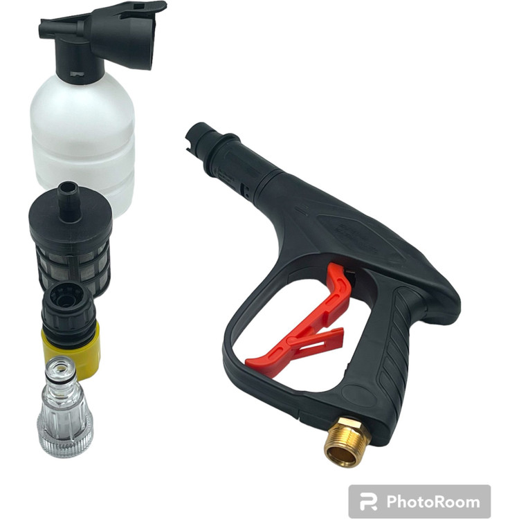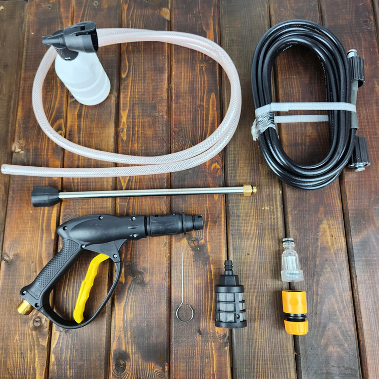 دارای نازل قابل تنظیم کوتاه و بلند ، شلنگ فشار قوی، شلنگ معمولی، یک عدد فیلتر، یک عدد بطری مواد شوینده و …