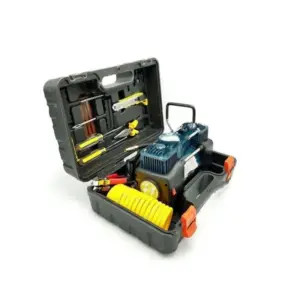 ✔️ دارای متعلقات کاربردی؛ شلنگ فنری به طول ۵ متر، دمباریک، کاتر، انبرک های پنچر گیری، پیچ گوشتی دوسو و چهارسو، وصله پنچرگیری، چسب پنچرگیری، تبدیل فندکی به سر باتری خودرو، سه عدد سری (جهت باد زدن توپ، دوچرخه، قایق بادی و …)